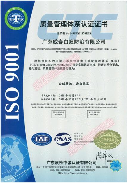 广州白蚁防治资质证字第:44010086号